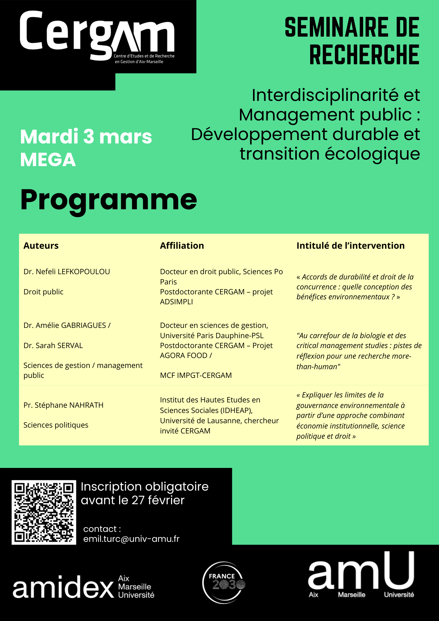 - Lieu : CERGAM, MEGA, Aix-en-Provence (salle de conférences, RDC)
